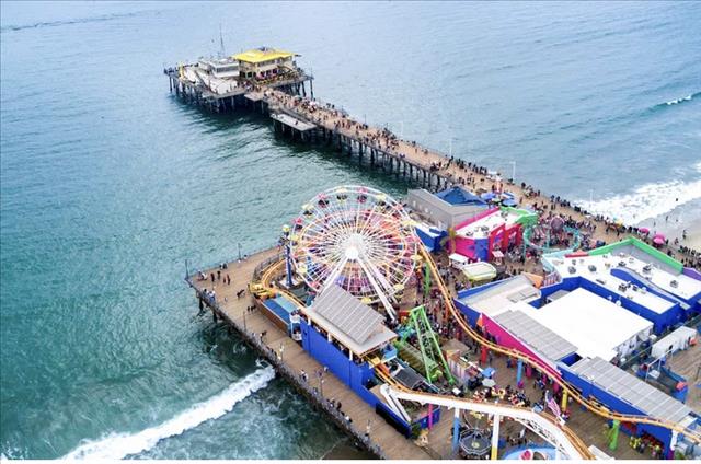 -ระยะ 100 หลา ตามแนวชายฝั่งขึ้นและลง จาก Santa Monica Pier ในซานตามอนิกา