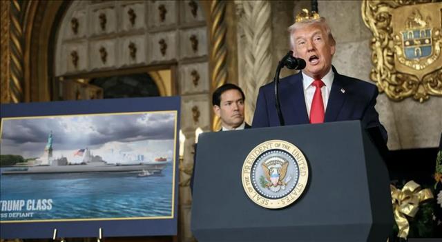 “เรือเหล่านี้จะเป็นเรือที่เร็วที่สุด ใหญ่ที่สุด และมีพลังมากกว่าเรือรบใดๆ ที่เคยสร้างถึงร้อยเท่า” ทรัมป์กล่าวที่สนามกอล์ฟ Mar-a-Lago ในฟลอริดา โดยย้ำว่าเรือทุกลำจะผลิตภายในประเทศ ซึ่งจะทำให้เกิดการจ้างงานหลายพันตำแหน่ง