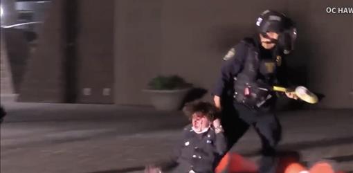 การประท้วงต่อต้านการบังคับใช้กฎหมายตรวจคนเข้าเมืองของสำนักงานตรวจคนเข้าเมืองและศุลกากรสหรัฐฯ (ICE) บริเวณใกล้อาคารรัฐบาลกลาง (Federal Building) ใจกลางเมืองซานตาอานา ของออเรนจ์เคาน์ตี และเป็นที่ตั้งของสำนักงานภาคสนามของ ไอซ์ เมื่อคืนวันศุกร์ที่ 9 มกราคม 2025 บานปลายกลายเป็นเหตุรุนแรง หลังจากเจ้าหน้าที่ได้ “เดินหน้า” เข้าหากลุ่มผู้ประท้วง และใช้กำลังดึงชาย 2 คนออกมาจากฝูงชน พร้อมยิงกระสุนพริกไทย (pepper balls) หรือกระสุนยางใส่กลุ่มผู้ชุมนุม