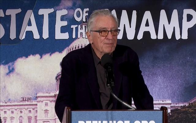 เดอ นีโรยังเป็นผู้ปราศรัยหลักในกิจกรรมตอบโต้การแถลงนโยบายประจำปีของทรัมป์เมื่อวันที่ 24 กุมภาพันธ์ ซึ่งจัดโดยเครือข่าย คูเรียร์ นิวส์รูม และกลุ่มแนวก้าวหน้าอื่นๆ โดยเขาบอกว่าอเมริกาจำเป็นต้องกลับไปยึดมั่นในคุณค่าและอุดมการณ์ที่ทำให้เรามีความเข้มแข็งและความเป็นมนุษย์