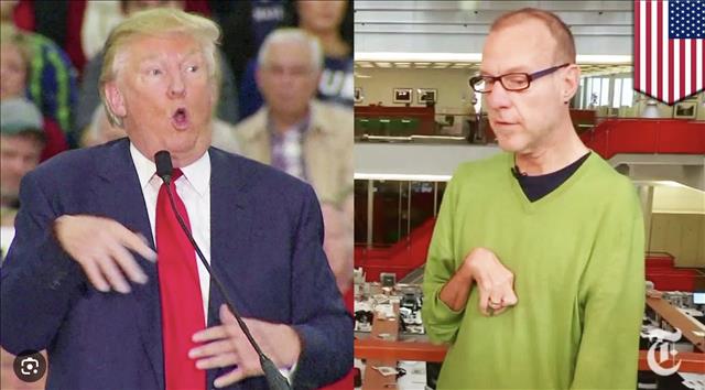 ทรัมป์แสดงอาการล้อเลียน เซอร์ก โควาเลสกี (Serge Kovaleski) ผู้สื่อข่าวของนิวยอร์กไทมส์ เมื่อปี 2015