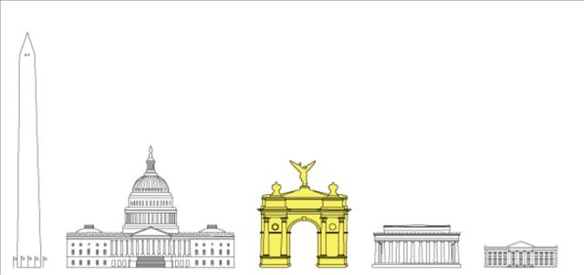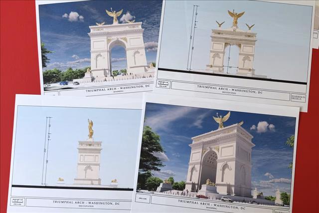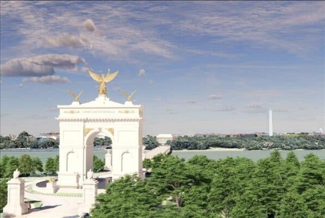 ทรัมป์บอกว่าเขาจะสร้างซุ้มประตูชัยแห่งนี้ให้ใหญ่ที่สุดในโลก แม้พื้นที่ก่อสร้างจะอยู่ในแนวเส้นทางบินขึ้นลงของสนามบินเรแกน เนชันแนล ก็ตาม โดยทรัมป์ให้เหตุผลของการสร้างซุ้มประตูชัยแห่งนี้แบบอ้างอิงข้อมูลใดๆ ว่า เป็นเพราะกรุงวอชิงตัน เป็นเมืองสำคัญเพียงแห่งเดียวในโลกที่ยังไม่มีซุ้มประตูชัยขนาดใหญ่ และบอกโครงการของเขาจะ “ยิ่งใหญ่กว่าทุกแห่ง”
