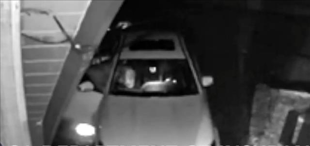 ภาพจากกล้องวงจรปิดขณะ "หมีปลอม" คลานเข้าไปทำลายสภาพภายในรถ