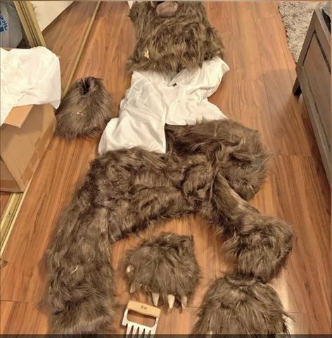 ชุดหมีที่เจ้าหน้าที่ยึดได้ขณะตรวจค้นบ้านผู้ต้องหา