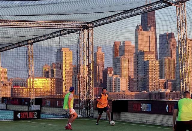 ศูนย์กีฬาพื้นที่ขนาด 25,000 ตารางฟุตบนดาดฟ้าอาคารสูงเก้าชั้นนี้ เรียกว่า Skyline Pitch ประกอบด้วยสนามฟุตบอลขนาดเล็ก 2 สนาม, สนามฟุตซอลเทนนิส, กรงพานนา (panna cage) และพื้นที่พักผ่อนที่มองเห็นวิวเมืองแอลเอ รอบทิศ