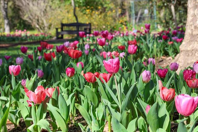 อาสาสมัครของสวนได้ร่วมกันลงหัวทิวลิปจำนวนมากตั้งแต่เดือนมกราคม และขณะนี้ดอกไม้ชุดแรกเริ่มผลิบานแล้ว คาดว่าจะเข้าสู่ช่วง “พีคบลูม” หรือบานเต็มที่ตลอดเดือนมีนาคม 2026 หากสภาพอากาศเอื้ออำนวย